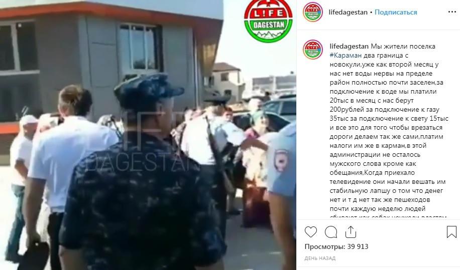 Жители махачкалинского поселка Караман-2 вышли на митинг к зданию местной администрации из-за длительного отсутствия воды в домах. Пользователи Instagram поддержали митингующих, заявив о проблемах с водоснабжением в других населенных пунктах республики.