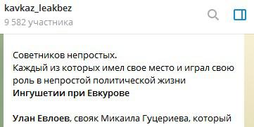 Улан Евлоев приходится родственником предпринимателю Михаилу Гуцериеву, а Мухажир Евлоев – бизнесмену Мусе Келигову, передает Telegram-канал kavkaz_leakbez, отмечая, что уволенные советники были «непростые». «Советников непростых. Каждый из которых имел свое место и играл свою роль в непростой политической жизни Ингушетии при Евкурове», - говорится в сообщении канала.