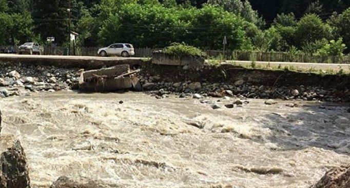 После обильных осадков и таяния ледника Лехзири вышла из берегов река Нескра в Местии, затопив здание "Местиачала ГЭС-1". Потоками воды снесен мост. В селе Мулахи разрушен мост через реку Мулхура. На месте работает специальная техника, сообщил мэр муниципалитета Капитон Жоржолиани.