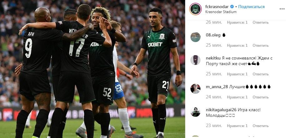 "Краснодар" в этом сезоне очень и очень хорош. Серьезная команда. Может на многое замахнуться [...] "Сочи" не надо вешать нос. Играют в первых турах с сильнейшими. Но команда хорошая", - написал он в своем посте "Краснодар - Сочи: кубанское "дерби" - смотрим вместе! И о прошедших матчах третьего тура ЧР по футболу".