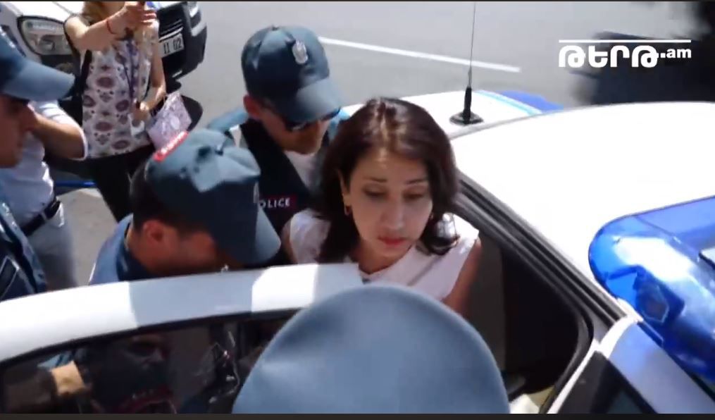 После выступлений участников акции протеста на кадрах видео, выложенного в соцсети, видно, что между активистами и вышедшими к ним сотрудникам мэрии произошла словесная перепалка. На следующих кадрах камера показывает разбросанный перед зданием ереванской мэрии мусор. Далее кадр фиксируется на том, что одну из активисток полицейские сажают в служебный автомобиль и увозят. Следом также увозят еще двух активистов.