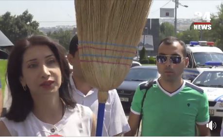 Активисты движения «Альтернативная мэрия» пришли сегодня к зданию ереванской администрации с вениками и пакетами с мусором. Этой акцией активисты решили понять проблему вывоза мусора в городе, перевел корреспондент «Кавказского узла» слова организаторов акции, которая транслировалась на странице движения в соцсети Facebook.