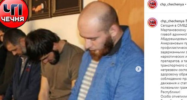 В том же паблике 20 октября размещено сообщение о том, что в ОМВД по Урус-Мартановскому району силовики вместе с главой администрации района Валидом Абдурешидовым и кадием района провели профилактическую беседу "с задержанными за употребление наркотических и психотропных препаратов".