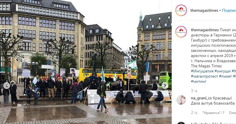 "Сегодня в немецком Гамбурге представители ингушской диаспоры в центре города провели пикет в память о геноциде ингушей в Пригородном районе осенью 1992 года. На плакатах и фото участники акции разместили тексты и фото о депортации ингушей в 1944 году, а также требования скорейшего освобождения ингушских политических заключенных", - говорится в одном из сообщений.