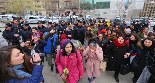 Акция 20 октября стала второй с начала года акцией в защиту прав женщин в Баку. Ранее, 8 марта, группа феминисток в Баку инициировала шествие "Выступи против насилия". На место акции пришли около 50 женщин с плакатами, однако полицейские помешали планам активисток, объявив шествие несогласованным. Силовики оттеснили женщин с площади, в разгоне акции участвовала также группа женщин-провокаторов.