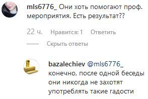 "Они хоть помогают, проф. мероприятия. Есть результат?" – поинтересовался, в частности, mls6776_. "Конечно, после одной беседы они никогда не захотят употреблять такие гадости", - ответил bazalechiev. "Если есть зависимость у них к этим вещам, никакая беседа не поможет, пока они сами не осознают, что в этом есть вред", - поделился мнением пользователь abdurahmanova_095.