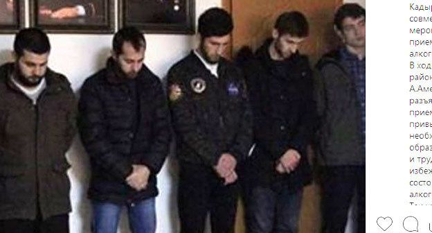 Сообщение об очередной воспитательной беседе с задержанными размещено 14 декабря в Instagram-паблике "ЧП/Чечня", насчитывающем 87,5 тысячи подписчиков. "В ОМВД района провели совместное профилактическое мероприятие с задержанными по приему психотропных веществ и алкогольных напитков. В ходе встречи начальник ОМВД района В. Бацилов, кадий района А.Амерханов провели беседы, разъясняя молодым о пагубности приема и последующего привыкания к данным веществам. [...] Призвали одуматься, вступить на правильный образ жизни", - говорится в сообщении.