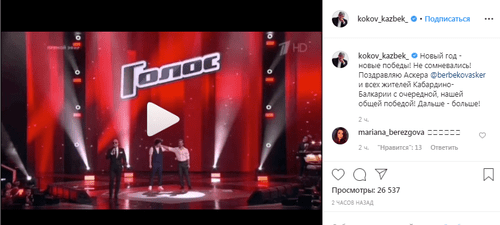 Исполнителя поздравил глава Кабардино-Балкарии Казбек Коков. На своей странице в Instagram 1 января он разместил фрагмент видео, в котором объявили победителя конкурса, в аннотации к которому написал: "Поздравляю Аскера и всех жителей Кабардино-Балкарии с очередной нашей общей победой". По данным на 01.40 мск сегодня видео просмотрели 26,5 тысячи раз, пользователи оставили под ним 1100 комментариев.