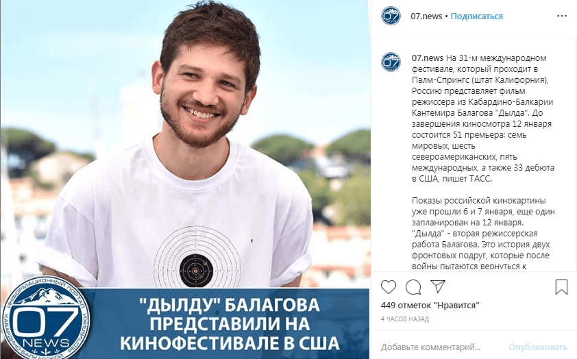 Кинокартина режиссера из Кабардино-Балкарии Кантемира Балагова "Дылда" показана на международном фестивале в городе Палм-Спрингс в США.
