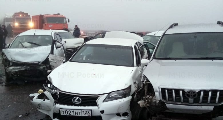 Два человека погибли, десять пострадали в результате столкновения не менее 20 машин на трассе под Адыгейском.