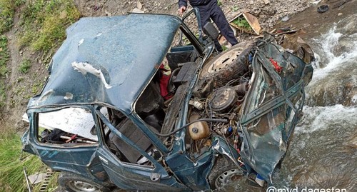 "Автомашина ВАЗ-2121, припаркованная на обочине дороги, скатилась в обрыв высотой 250 метров. В результате водитель автомашины 46-летний житель села Хосрех Кулинского района и его 51-летний пассажир от полученных телесных повреждений скончались на месте", - сказано в сегодняшнем сообщении на сайте МВД по Дагестану.