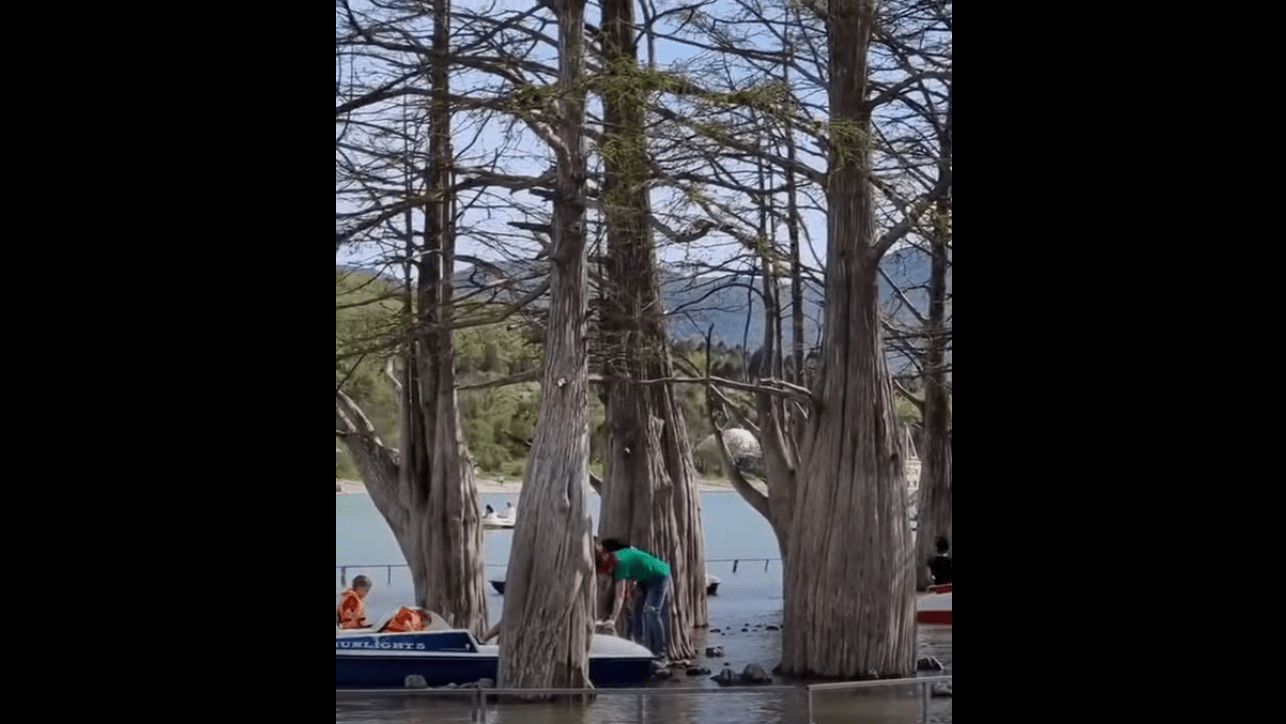 "К кипарисам пришла вода. Но будьте людьми, не надо при этом вылазить на корни. Приезжайте, катайтесь на катамаранах, отдыхайте. Сегодня полнейший аншлаг на Кипарисовом озере. Но только вот, к сожалению, не все люди хотят ценить эту красоту", - говорит автор видеообращения.