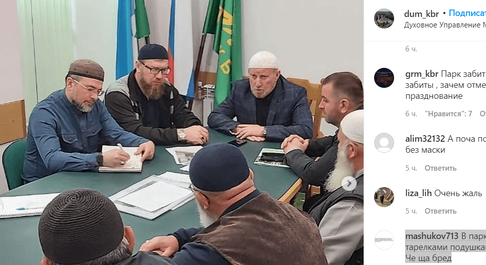 На праздничные богослужения верующим необходимо приходить со своими ковриками и использовать маски, сообщило сегодня ДУМ Кабардино-Балкарии в своем Instagram. Участники встречи у муфтия были без масок, указали комментаторы.