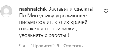 "Заставили сделать! [...] кто из врачей откажется от прививки, [пригрозили] увольнять с работы!" - написала nashnalchik.
