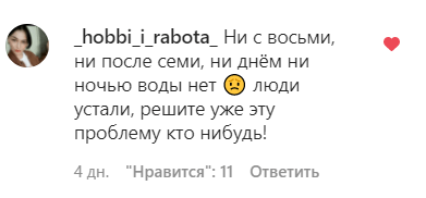 "Ни с восьми, ни после семи, ни днём ни ночью воды нет. Люди устали, решите уже эту проблему кто-нибудь!" - написал _hobbi_i_rabota_.