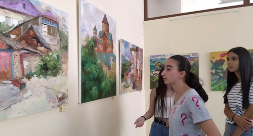 На выставке в Степанакерте представлено более 70 работ художников - участников ежегодного симпозиума живописи "Цветы Дизака". Организаторы и участники форума назвали его основной целью сохранение культуры Нагорного Карабаха на фоне непростой социальной и политической ситуации.
