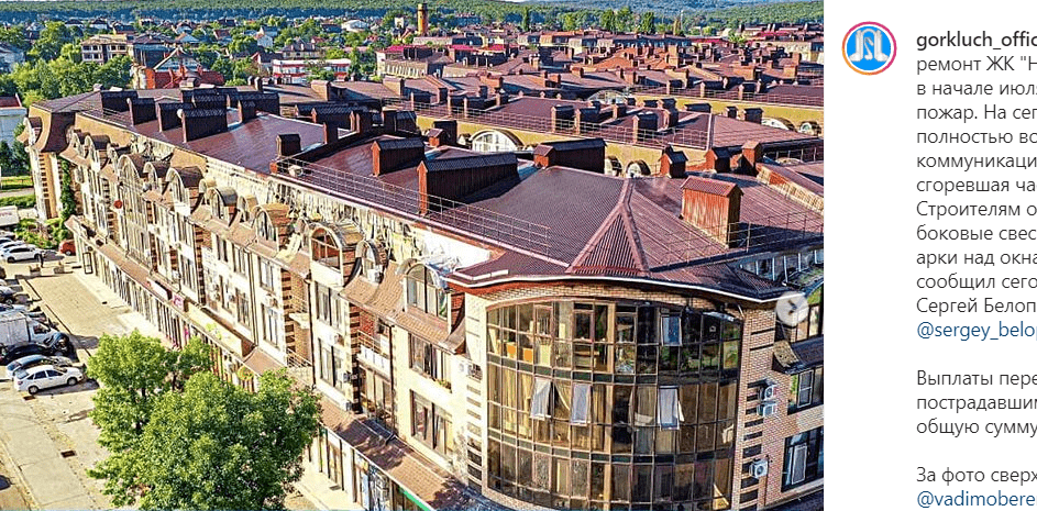 "Выплаты перечислены 76 пострадавшим при пожаре на общую сумму 2,9 миллиона рублей", - говорится 29 июля в сообщении на странице администрации Горячего Ключа gorkluch_official в Instagram.