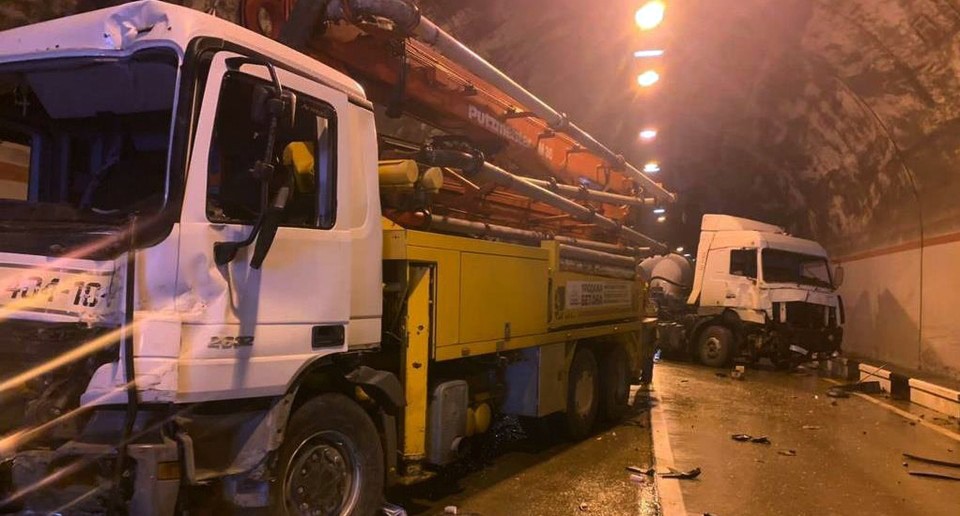 Два грузовых автомобиля и три легковушки столкнулись в тоннеле на автодороге Адлер - Красная Поляна, шесть человек доставлены в больницу.