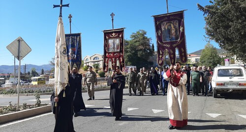 Также сегодня в 10:30 по местному времени (9.30 мск) Арцахская епархия Армянской Апостольской церкви (ААЦ) провела во всех церквях панихиду по душам погибших воинов и гражданских лиц. В Степанакерте в Соборе Пресвятой Богородицы службу провел предводитель Арцахской епархии ААЦ преосвященный епископ Тер Вртанес Абрамян, который обратился с пастырской речью к присутствующим, призвав "следовать за Христом и идти путем вечности".