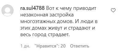 "Вот к чему приводит незаконная застройка многоэтажных домов. И люди в этих домах живут и страдают, и весь город страдает", - написал ra.sul4788.
