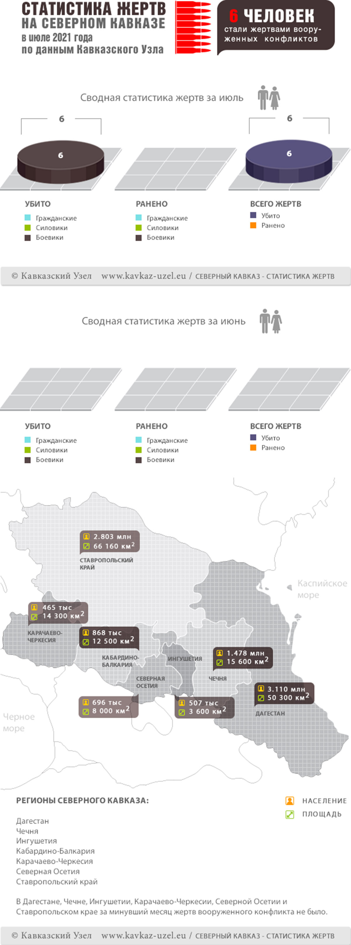 Инфографика. Статистика жертв на Северном Кавказе в июле 2021 года по данным Кавказского Узла