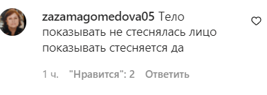 "Мир перевернулся. Пятую точку не стесняются показывать, а лицо стесняются", - написала rehana____. "Тело показывать не стеснялась, лицо показывать стесняется", - поддержала ее zazamagomedova05.