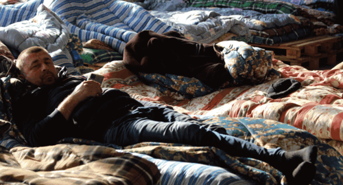Возле центрального офиса разбито 12 палаток разной величины, в которых расположились голодающие. В палатках установлены деревянные поддоны, на них положили матрасы, подушки и одеяла. Все палатки отапливают электрическими обогревателями. Голодающие не испытывают бытовых проблем, но посмеиваются, что им приходится отстаивать очередь в туалет.