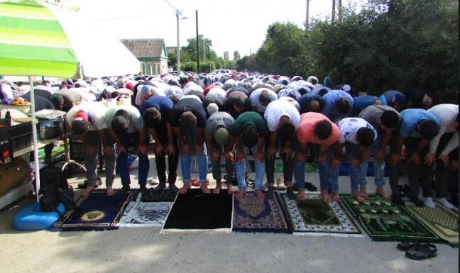 Мусульмане заполнили помещения мечети на двух этажах. Молящиеся разместились на ковриках во дворе мечети и на улице, прилегающей к ее входу. Женщины и малолетние дети расположились отдельно от мужчин в тени деревьев. Молитва началась в 8.00 мск и продлилась полчаса. Слова муфтия доносились из громкоговорителя, установленного на фасаде мечети. После молитвы часть мусульман осталась в мечети, чтобы прослушать проповедь муфтия. Остальные обступили столики торговцев. После проповеди муфтий Волгоградской области при Центральном духовном управлении мусульман России Ильяс Биктимиров проводил индивидуальные беседы с верующими.