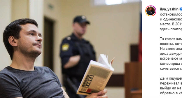 На странице Яшина в Facebook** после ареста появилась запись от его имени, в которой он говорит, что понимал, что его арестуют, однако решил остаться в России. "В ходатайстве о заключении меня под стражу сказано: "Яшин своими выступлениями нанёс ущерб интересам России..." Чушь. Своими выступлениями я защищал Россию", – отметил политик.