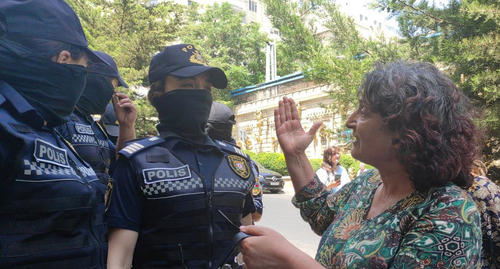 Другая участница акции раскритиковала социальную политику правительства. "Дают 300 манатов (180 долларов) зарплату. Это не зарплата, это подаяние", - сказала она.