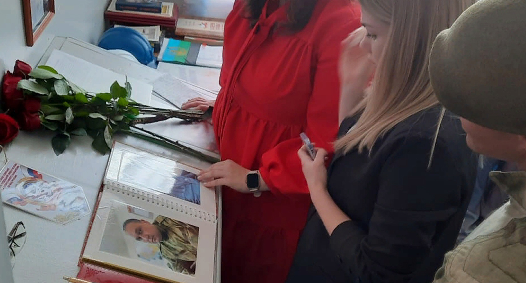 Воина почтили минутой молчания, учителя и представители администрации возложили цветы к мемориальной доске.