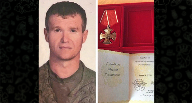 Уроженец села Кишпек Мурат Гошоков погиб на Украине, его родным передан орден Мужества, сообщила сегодня администрация Баксанского района. Мурат Гошоков служил по контракту, был участником военной операции в Сирии. Погиб 5 июля, говорится в сообщении в Telegram-канале районной администрации.
