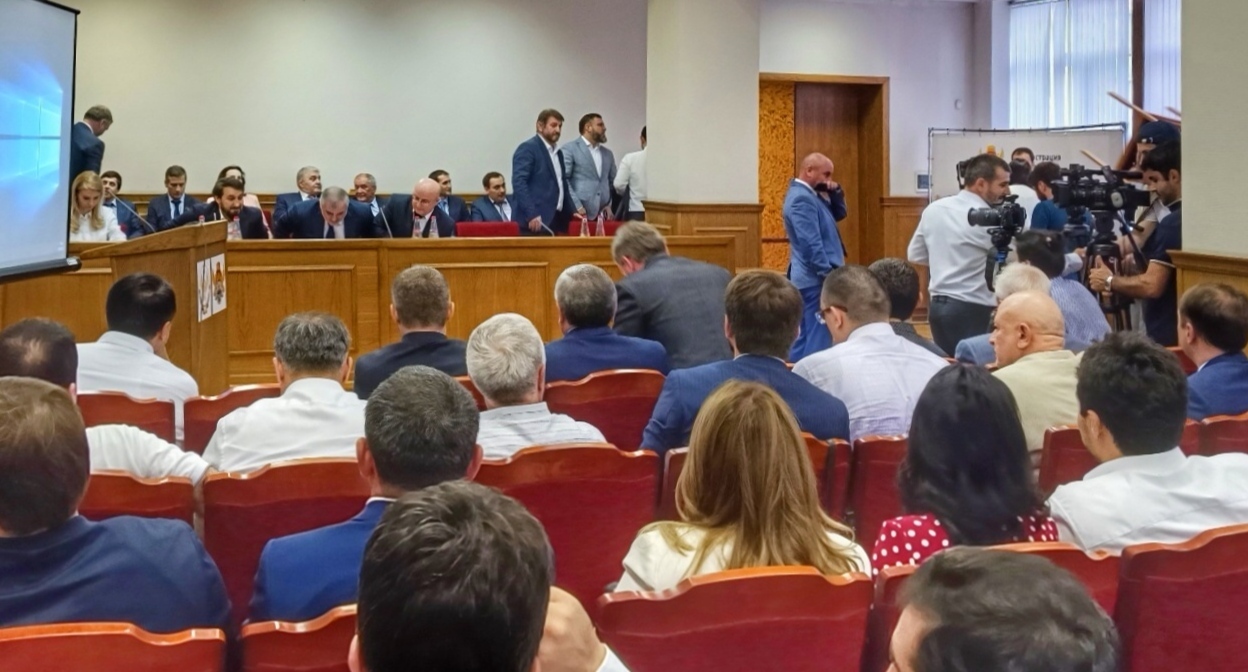 В зале, где проходило заседание, присутствовал 41 депутат горсобрания, а также депутаты Народного собрания, избранные от Махачкалы. Также в зале находились журналисты и представители различных городских структур, передал корреспондент "Кавказского узла", присутствовавший на месте.
