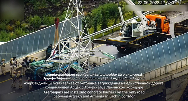 Азербайджан перекрыл бетонными блоками  единственную дорогу, соединяющую Нагорный Карабах с Арменией (Лачинский коридор), сообщил сегодня инфоштаб правительства Нагорного Карабаха. "22 июня азербайджанская сторона установила бетонные блоки на мосту Хакари, полностью перегородив проезжую часть единственной дороги жизни, соединяющей Арцах  (самоназвание Нагорного Карабаха) с Арменией, и сделав движение по ней автотранспорта технически невозможным. Таким образом, всего за месяц Азербайджан превратил свой незаконно установленный  блокпост на дороге в Лачинском коридоре в военный опорный пункт с бронетехникой, инженерными заграждениями и вооруженным персоналом", - говорится в сообщении, опубликованном в Telegram-канале инфоштаба.