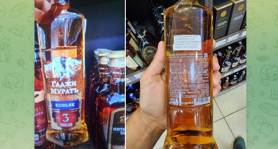 Как писал "Кавказский узел", 10 августа в телеграм-канале "ЧП/Кавказ" была опубликована фотография коньяка под названием "Гаджи Муратъ", который стоит среди другой коньячной продукции. Пользователи Telegram предположили, что производитель использовал имя Хаджи-Мурата в названии коньяка. Это оскорбляет чувства верующих, муфтият Дагестана должен вмешаться, заявили они.