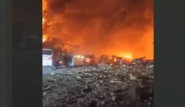 Как следует из видео, опубликованного в Telegram-канале "Черновик" вечером 14 августа, во время пожара продолжают звучать взрывы - так с интервалом в пять секунд прозвучали два взрыва. На месте находится полиция.