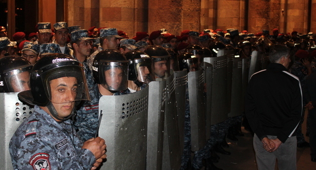 В результате столкновений между протестующими и силовиками в центре Еревана пострадали 34 человека, в том числе 16 полицейских.