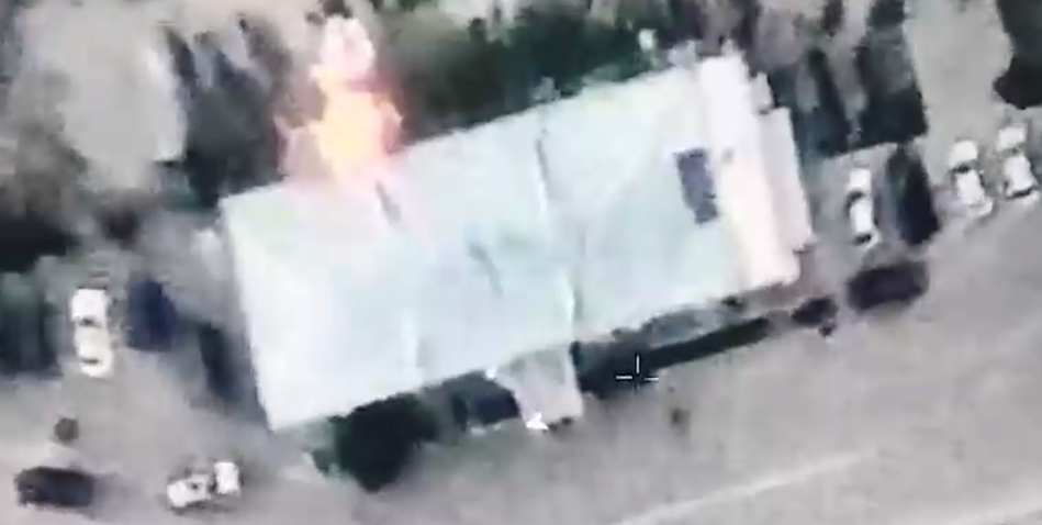 Поджог в Агдере. Стоп-кадр видеозаписи Минобороны Азербайджана от 23.09.23, https://t.me/Azerbaijan_MOD/18479К сообщению приложено видео. В первой части видеозаписи со средств наблюдения виден один большой пожар, затем на видео показаны кадры с несколькими очагами огня.