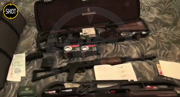 Также на кадрах видно, как силовики открывают футляры с автоматическим оружием, а из шкафа извлекают несколько десятков банок с надписью Russian caviar ("Русская черная икра"). Кроме того, на видео показано, как силовики открывают несколько сейфов, из одного достают футляры с ювелирными изделиями. В конце ролика видно, как задержанного мужчину, чьи глаза завязаны, выводят из микроавтобуса и сажают в вертолет.