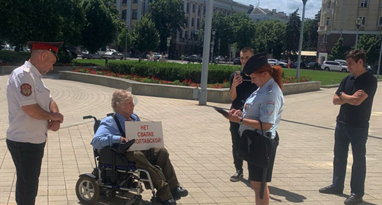 Как писал "Кавказский узел", 27 сентября силовики доставили тяжелобольного активиста из станицы Полтавской, инвалида-колясочника Юрия Трубачева в суд, где он был оштрафован на 15 тысяч рублей за участие в съемке видео против мусорного полигона близ станицы. Трубачев пожаловался, что из-за отсутствия пандуса полицейский, доставивший его, не смог поднять его в здание, и заседание прошло в подсобном помещении, а он сам был лишен доступа в туалет в течение нескольких часов из-за отсутствия туалета для инвалидов-колясочников. Адвокат активиста Михаил Левицкий указал, что отсутствие пандуса и туалета для инвалидов в здании суда ограничило Юрия Трубачева к доступе к правосудию и нарушило его права.