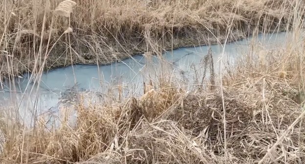 "Сегодня нами был зафиксирован массовый сброс непонятной жидкости мутно-белого цвета в канал оросительной системы. Из канала, прилегающего к телу полигона, данная жижа вытекала и смешивалась с прозрачной водой. Далее неустановленные вещества, предположительно, являющиеся стоками с полигона и очистных сооружений станицы Полтавской, утекают в систему орошения рисовых полей и по ней в реку Протока, а затем в Азовское море", - говорит на видео активистка.