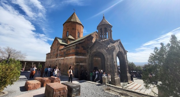 Самвел Алахвердян из Степанакерта отметил, что приехал в монастырь Хор Вирап с семьей.