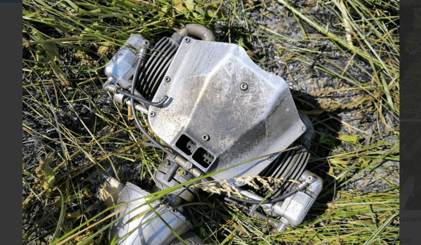 Кумпилов опубликовал фотографии предполагаемых обломков БПЛА. На двух из них трава, в которой они лежат, зеленая, на одном видны следы пожара. На последнем снимке четко видно, что обломок - это колесо. На еще одной фотографии, судя по всему, изображен двигатель беспилотника.
