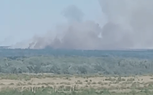 Кадры с места разместил Telegram-канал 112, на них виден столб дыма над лесополосой.