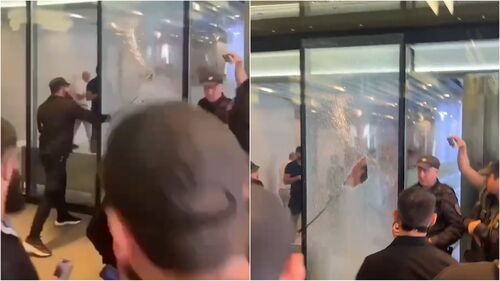 В холле компании, куда пришли Бакальчук и сопровождающие, было большое число полицейских. Один из нападавших молотком или топором разбили стеклянные стены офиса и вошли в образовавшийся проход 9. На видео слышны крики: “Ломай все!”. Полиция, судя по видео, не мешала разбивать стену.