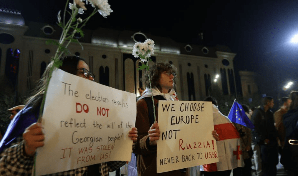 Жители Грузии, не согласные с результатами выборов, 28 октября вышли на акцию протеста в центре Тбилиси и перекрыли проспект Руставели. Участники акции оппозиции в центре Тбилиси потребовали провести новые выборы под эгидой международной избирательной ассоциации.