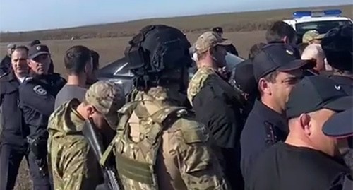 Ранее, в ночь на 3 ноября, в этом же телеграм-канале было опубликовано другое видео, записанное также в светлое время суток и в этой же сельской местности. На кадрах видно не менее нескольких десятков мужчин разного возраста, сотрудники полиции, вооруженные силовики в камуфляжной форме и по меньшей мере четыре полицейских внедорожника. Вдалеке видно множество стоящих гражданских автомобилей. Собравшиеся стоят группами по несколько человек и мирно переговариваются.