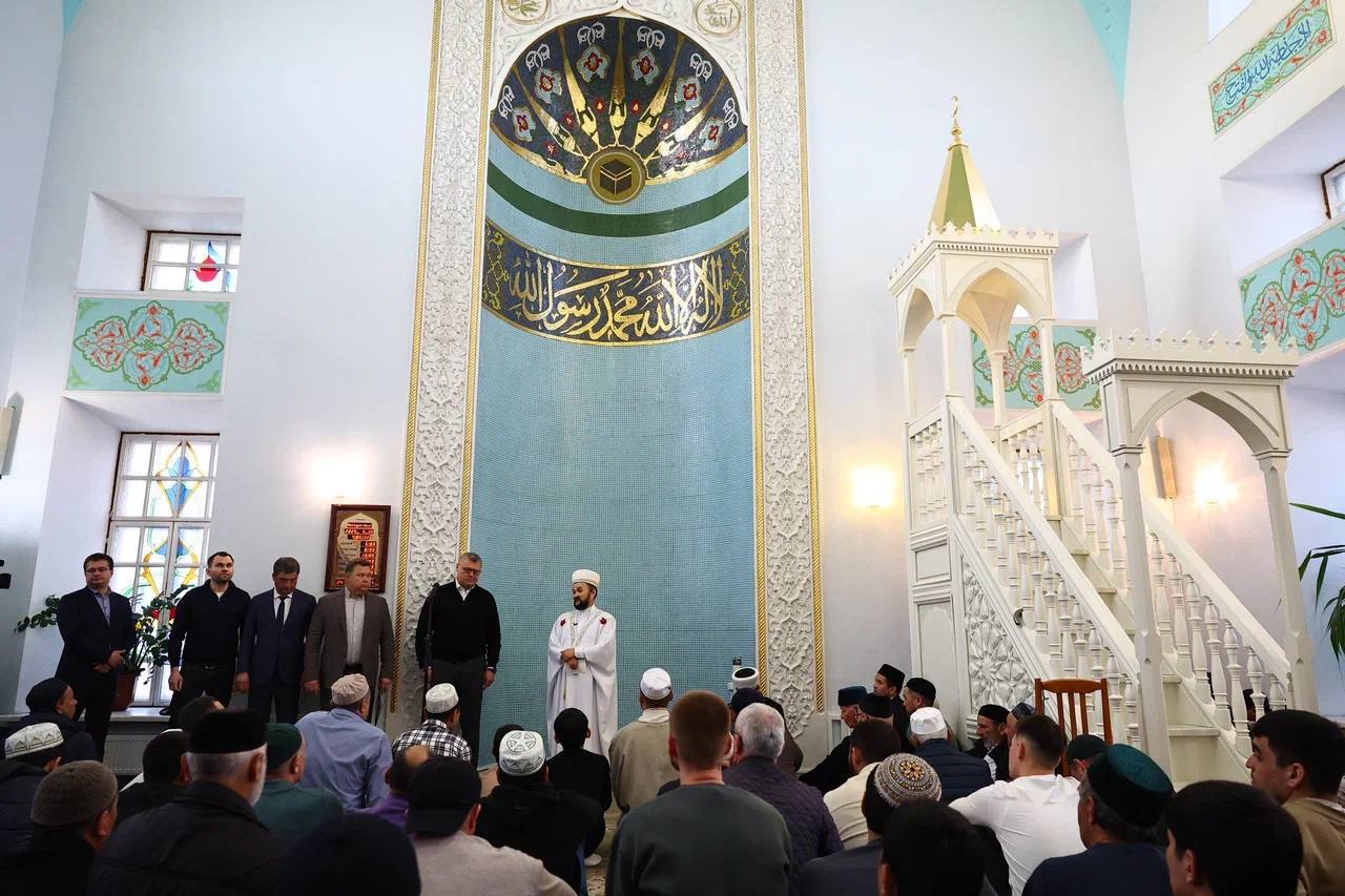 Глава Карачаево-Черкесии Рашид Темрезов вместе с другими жителями республики сегодня участвовал в праздничном намазе в соборной мечети КЧР. Видео из мечети сегодня в 10.31 мск опубликовано в телеграм-канале Темрезова.