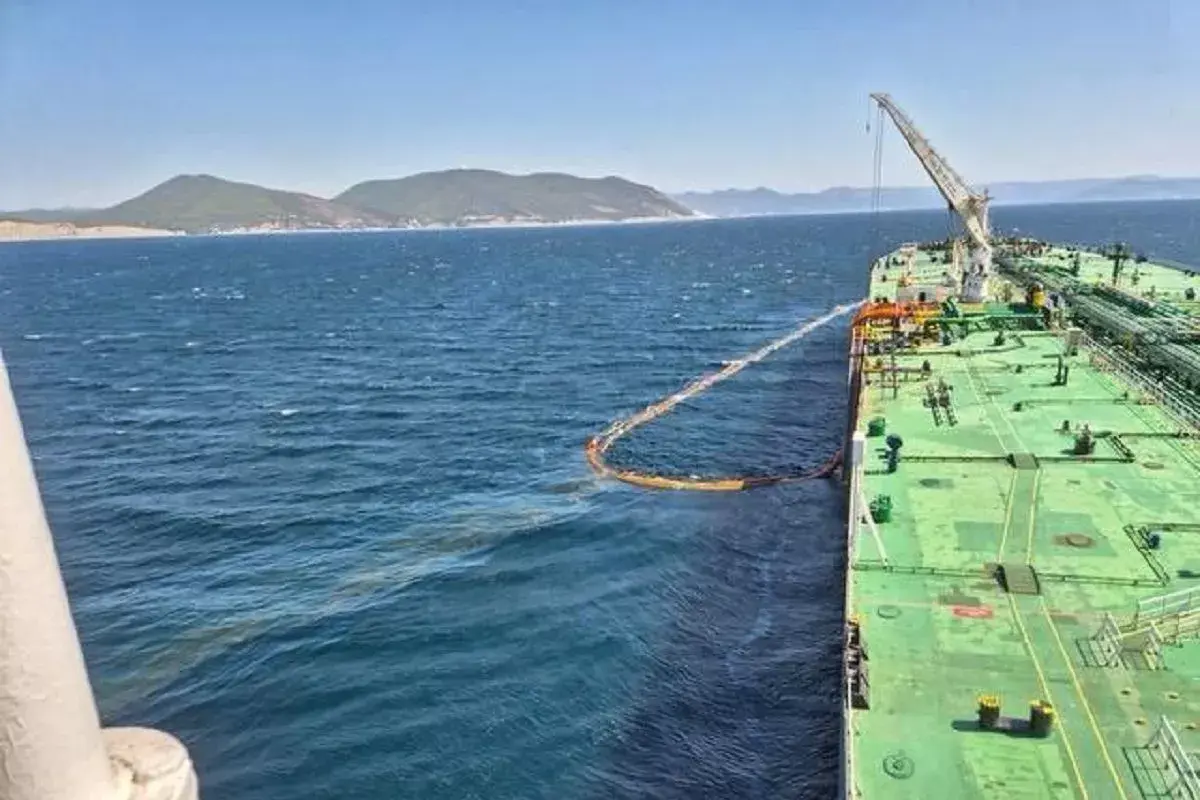 ЧП произошло в пяти километрах от берега во время погрузки нефти на турецкий танкер T.Semahat, прибывший из порта Керфез. На месте образовалось пятно нефти размером 400х100 метров, пишет Telegram-канал SHOT.