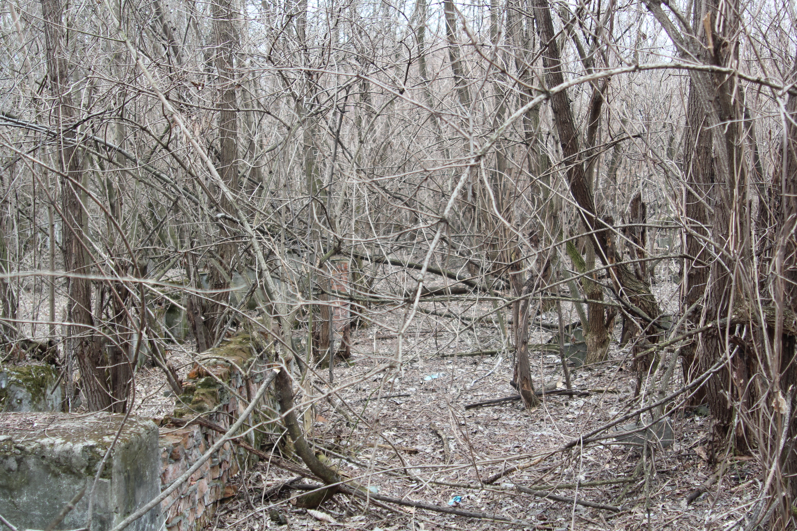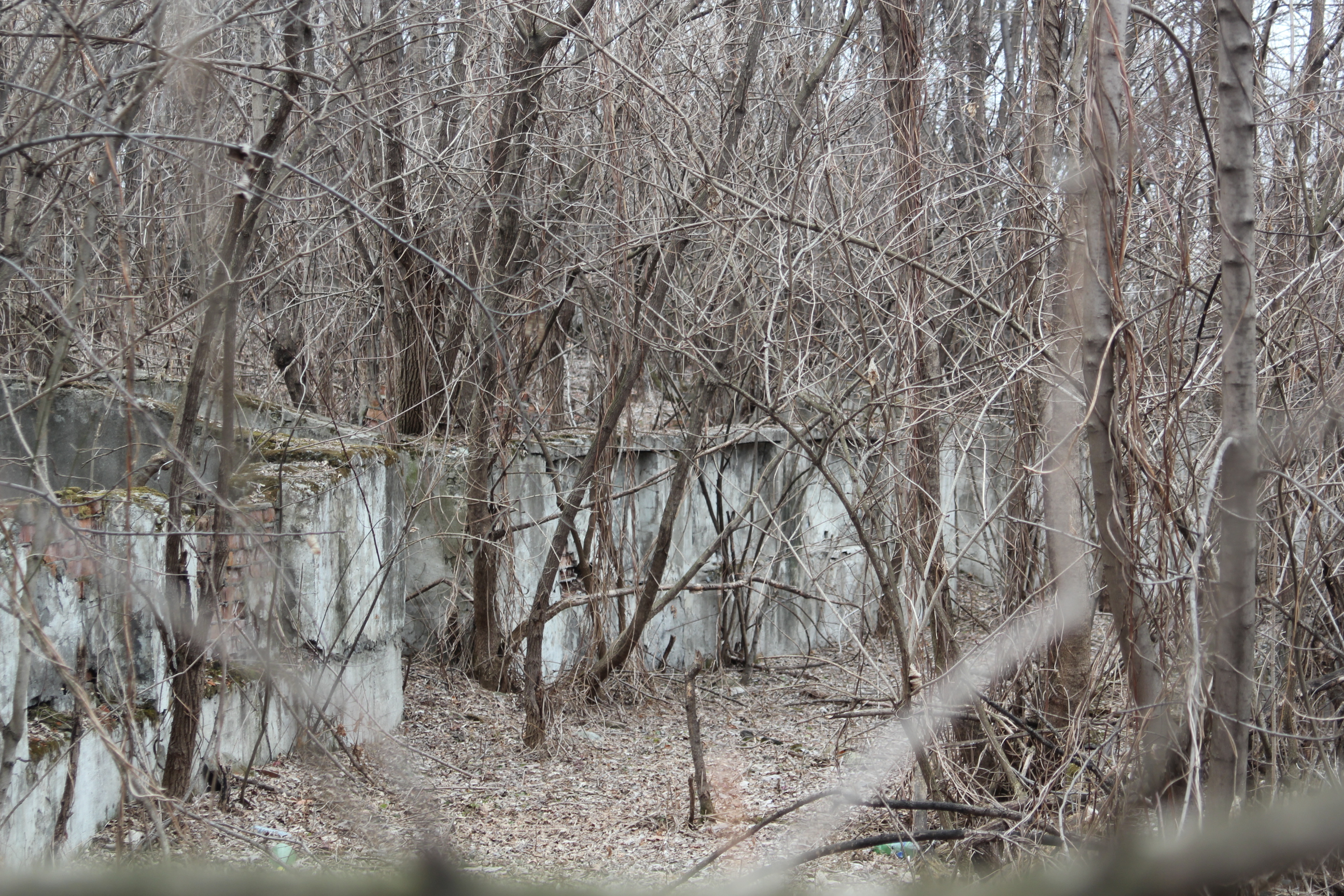 ну и несколько фотографий того, в каком состоянии сейчас находится "летний театр". в принципе, от него остался только этот вход, все остальное поросло лесом, сквозь который с трудом угадываются фрагменты трибуны и сцены.